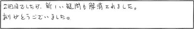 「2回目でしたが、新しい疑問も解消されました。ありがとうございました。」